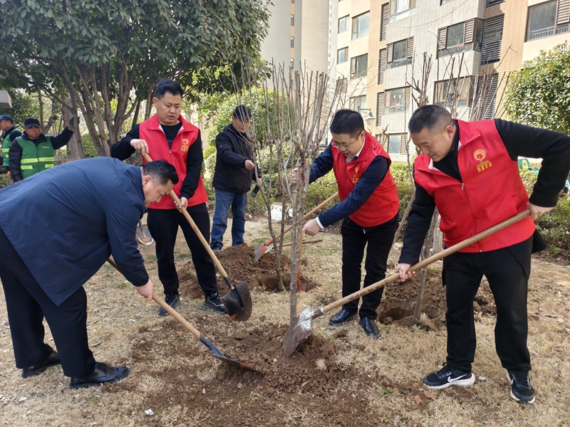 活動當天,滕投集團、人和社區(qū)、人和天地物業(yè)服務(wù)中心的志愿者們齊聚一堂,共同投入到植樹活動中。在專業(yè)人士的指導(dǎo)下,大家分工明確,配合默契,有的負責挖坑,有的負責搬運樹苗,有的負責培土澆水,共同為社區(qū)增添新綠。